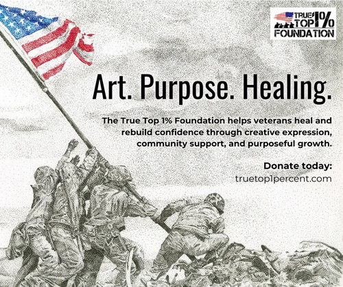 True Top 1% Foundation honors the brave one percent who served by offering Veterans a creative path toward healing. Through guided art workshops and supportive community, Veterans transform stress into strength and isolation into connection. Find more here.
